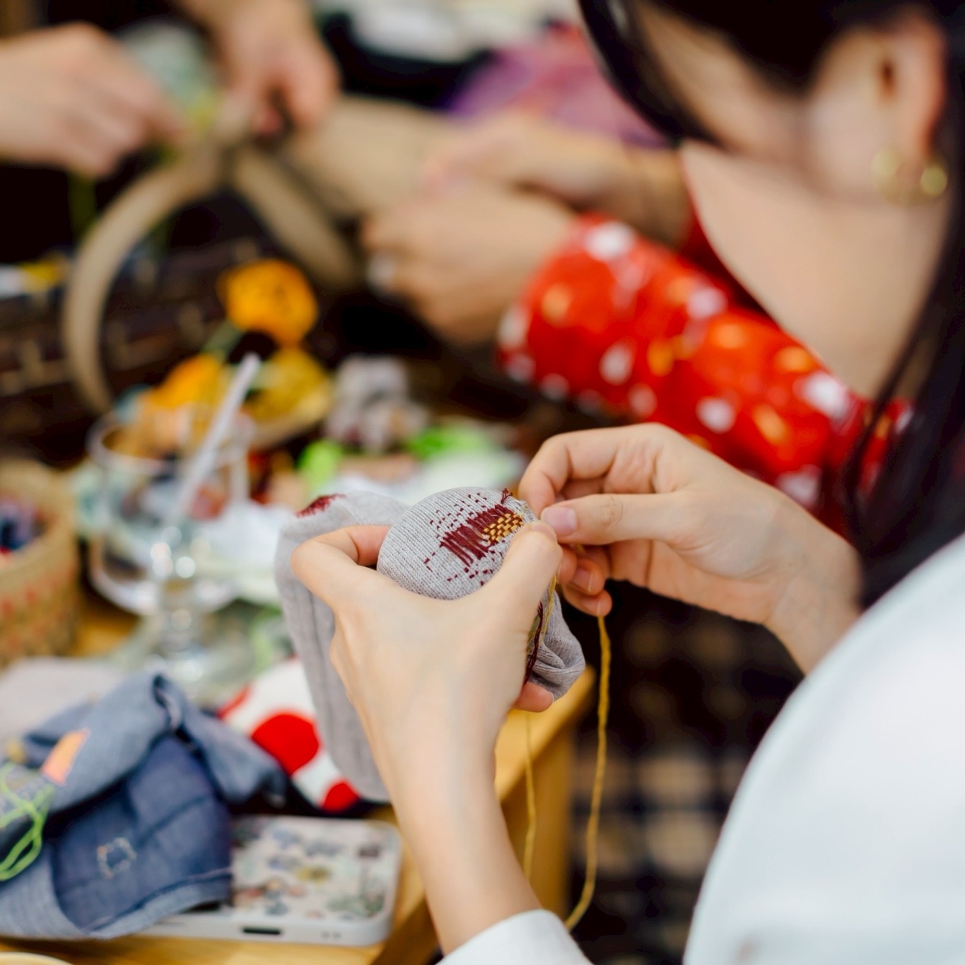 縫製の技術を生かしてイベントなどで服のクイックリペアやダーニングワークショップもやっています。